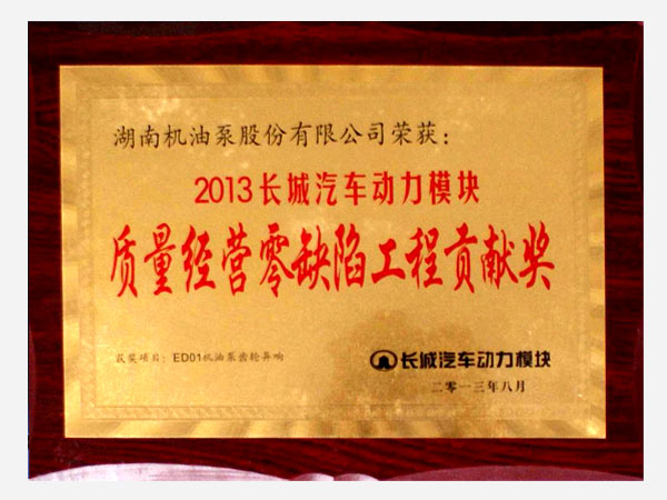 2012年公司技術中心獲得國家認定企業技術中心資格 ,湖南機油泵被評為"用戶滿意的內燃機配附件品牌", 公司還被評為湖南省配套服務十佳企業,質量信用AAA級企業,納稅信用A級單位,衡陽市成長性企業,同時還榮獲了衡陽市慈善獎,湖南省職工科技創新工作先進單位,公司黨委榮獲省委"創先爭優先進基層黨組織"稱號。